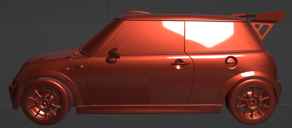 Auto zostało kompleksowo zeskanowane (karoseria, wnętrze, zawieszenie ,komora silnika i bagażnik) a następnie z użyciem skanu jako “blueprint 3d” wymodelowane w blenderze z pelnym zachowaniem “game ready”.
